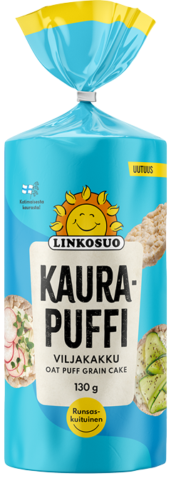 Puffisti makua ja rousketta arkeen ja kevyempään vuoden alkuun! Keveäksi puffattu viljakakku on hyvä vaihtoehto riisikakuille. Viljaisa välipala on sutjakan ohut, mutta makua on Linkosuon tapaan isosti ja kuitua mukavasti.